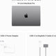 • شاشة احترافية رائعة — تتميز شاشة Liquid Retina XDR مقاس 14.2 بوصة بمدى ديناميكي فائق، وأكثر من 1000 شمعة سطوع لمحتوى HDR مذهل، وما يصل إلى 600 شمعة سطوع لمحتوى SDR، وأوضاع مرجعية احترافية لإنجاز أفضل أعمالك أثناء التنقل. (تتميز الشاشة بزوايا مدورة في الأعلى. وعند قياسها قطريًا، يبلغ حجم الشاشة 14.2 بوصة. المساحة الفعلية القابلة للعرض أقل.)